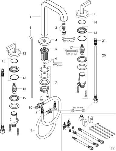 3-L Waschtischarmatur 170 AXOR CITTERIO DN 15 m Hebelgr u Ros. m Al 140mm bru bl