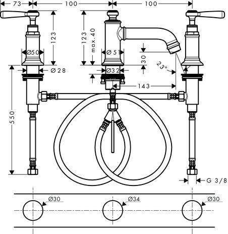 3-L Waschtischarmatur 30 AXOR MONTREUX DN 15 m Hebelgr m ZAG 1 1/4Zoll pol. go o
