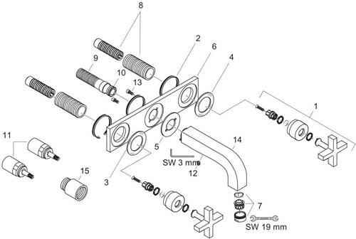 3-Loch Waschtischarmatur AXOR CITTERIO DN 15 UP m Al 226mm Kreuzgr. u Pl pol. g