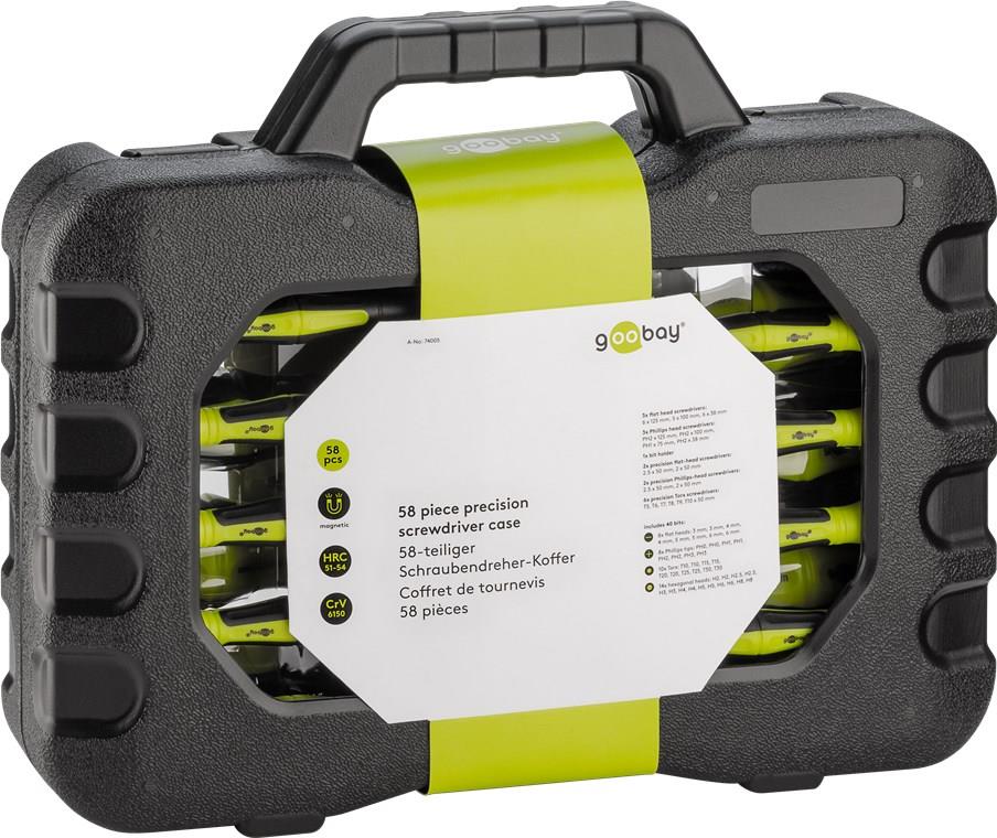 Präzisionsschraubendreher aus Chrom-Vanadium-Stahl (Cr-V) für besondere Stoßfestigkeit, geliefert im kompakten Kunststoffkoffer