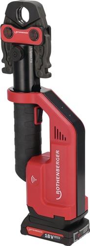 elektrohydraulische, radiale Pressmaschine ROMAX COMPACT III eignet sich ideal zum systemkonformen Verpressen von Fittings bis 35 mm (Metall) bzw. 40 mm (Kunststoff), auch in Zwangslagen · sie verpresst Fittings mit einer Kolbenkraft von 19 kN und einem Presszyklus von 3 Sekunden · konstante Presskraft über den kompletten Presszyklus wird durch die Constant Force Technology (CFT) garantiert · Echtzeit-Datenerfassung von relevaten Maschinenparametern und komfortable Erstellung von Pressprotokollen direkt vor Ort mittels ROTHENBERGER App durch CONNECTIVITY · durch die optimierte Kompaktbauweise und das perfekt ausbalancierte Gewicht werden Installationsarbeiten über längere Etappen eine Leichtigkeit