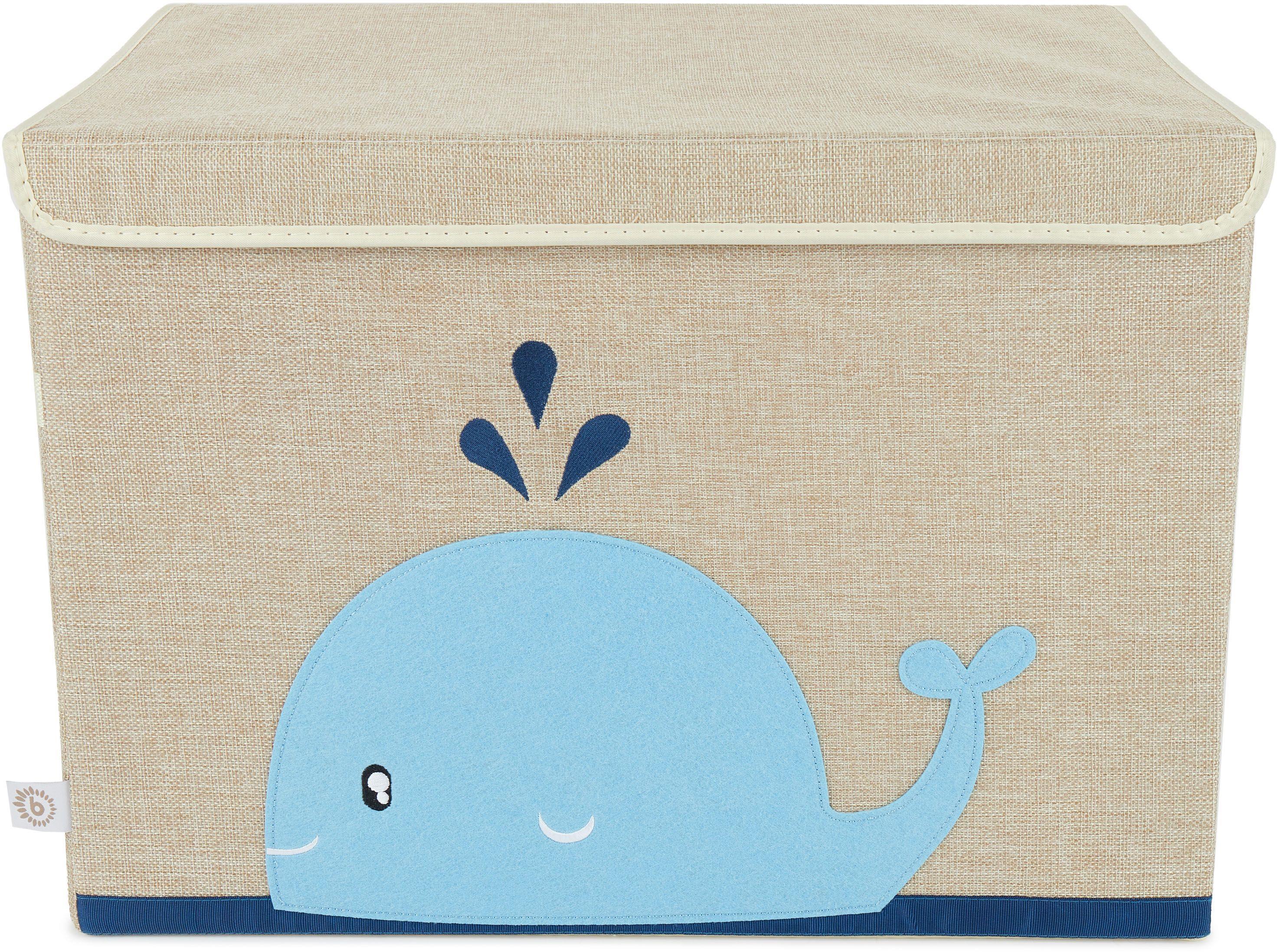 Diese schöne Spielzeugbox von Bieco bringt Ordnung ins Kinderzimmer. Die dekorative Kiste hat einen Deckel zum Aufklappen, der sich mit einem Klettverschluss leicht verschließen lässt. Wird die Aufbewahrungsbox einmal nicht benötigt, kann sie einfach zusammengefaltet werden und verschwindet platzsparend im Schrank. Dank der Tragegriffe an der Seite der Box lässt sie sich spielend einfach transportieren. Mit einem Fassungsvermögen von etwa 65 Litern bietet die schöne Box viel Platz für Lieblingsspielzeug, Kleidung und andere Dinge. Entdecke auch unsere weiteren Aufbewahrungsboxen in groß und klein für das Kinderzimmer mit weiteren niedlichen Motiven.