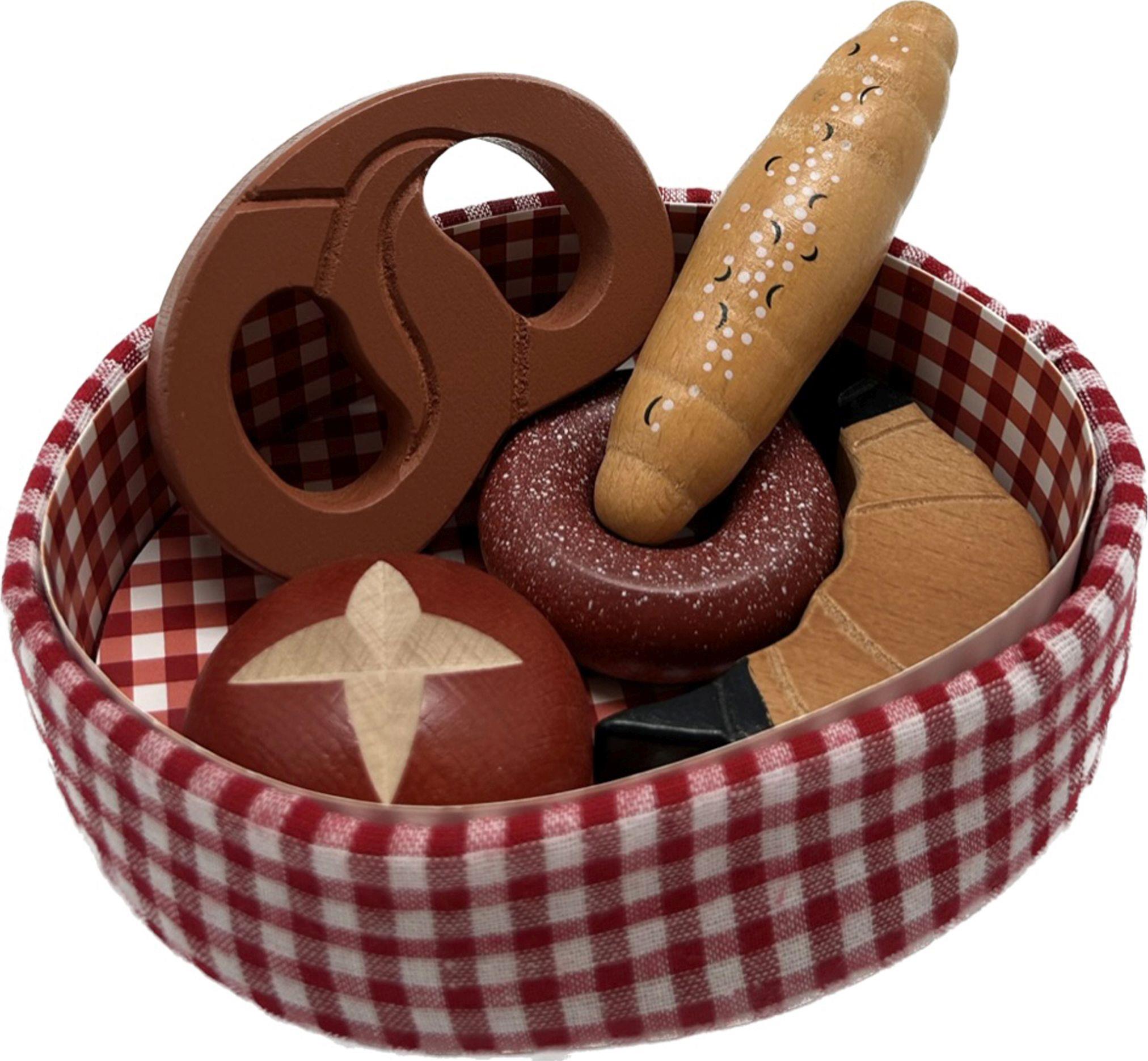 Brotkörbchen aus Baumwolle gefüllt mit hochwertigen Backartikeln aus Holz