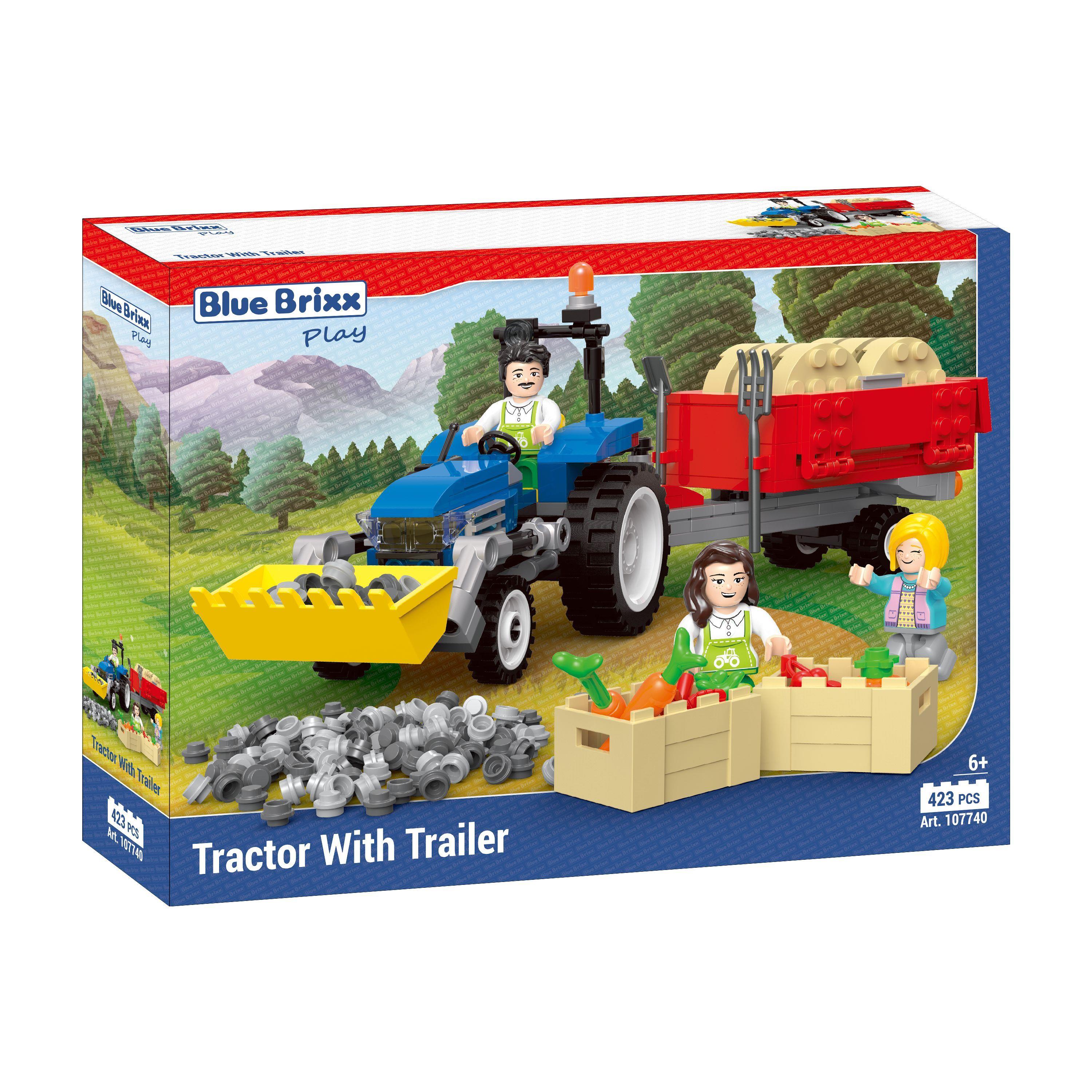 Spannendes Set: Mit 423 Teilen ermöglicht das Bauernhof - Trecker mitHänger-Set von BlueBrixx Play Kindern Spaß, Spannung und Action zu erleben. Dieses umfangreiche Set bietet eine aufregende & interaktive Bau- & Spielerfahrung. Detailreiches Design: Das Set enthält neben dem Trecker mit Hänger auch drei Minifiguren. Die detailreichen Elemente tragen zu einem lebensnahen & fesselnden Spiel bei. Bildungsfördernde Eigenschaften: Beim Zusammenbauen fördert das Set wichtige Fähigkeiten wie Feinmotorik, Konzentration & logisches Denken.Es ermutigt Kinder, kreative Lösungen zu finden. Hochwertige Materialien: Hergestellt aus hochwertigen Materialien, verspricht dieses Set langanhaltendenSpielspaß. Die Bausteine sind mit anderen Klemmbausteinsystemen kompatibel, was zusätzliche Bauoptionen & Flexibilität bietet. Perfektes Geschenk für kleine Klemmbausteinfans: Dieses Bauernhof - Trecker mit Hänger-Set ist das ideale Geschenk für Kinder, die sich fürKlemmbausteine begeistern. Es eignet sich hervorragend für Anlässe wie Geburtstage oder als besondere Belohnung & trägt zu stundenlangem kreativem Spielen bei.