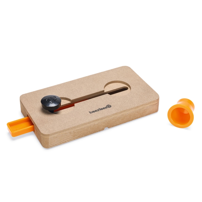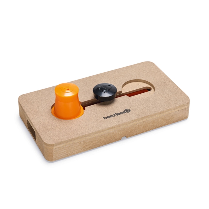 Das Beeztees Braingame Byzoe fordert deinen Hund auf spielerische Weise physisch und mental heraus, da er hier auf der Suche nach den versteckten Snacks verschiedene "Hürden" überwinden muss. Verstecke einen oder mehrere Snacks in dem großen orangefarbenen Schieber. Dein Hund muss nun zunächst den orangefarbenen Schalter bewegen, um die Schieber zu lösen und in beide Richtungen bewegen zu können. Durch den braunen Schalter kann dein Hund nun den orangefarbenen Schieber hin und herbewegen, um an die Belohnung heran zu kommen.