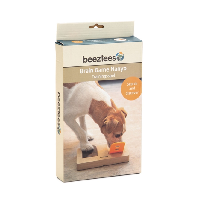 Das Beeztees Braingame Nanyo fordert deinen Hund auf spielerische Weise physisch und mental heraus, da er hier auf der Suche nach den versteckten Snacks verschiedene "Hürden" überwinden muss. Nanyo bietet 2 Versteckplätze, in die du schmackhafte Snacks platzieren kannst. Um an die Leckereien heran zu kommen, muss dein Hund die Deckel mit der Pfote und/ oder Schnauze öffnen.