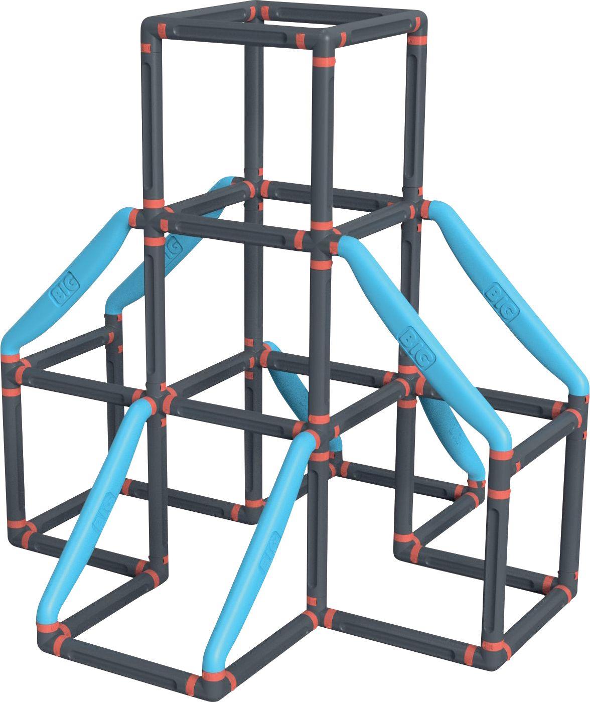 BIG Kraxxl - die büffelstarke hochwertige Klettergerüst-Linie von BIG BIG Kraxxl The Tower ist ein erstklassiger Kletterturm, der Kindern ultimativen Spielspaß bietet und gleichzeitig ihre körperliche Aktivität, Bewegung und Motorik fördert. Der BIG Kraxxl The Tower Kletterturm gewährleistet mit Hilfe seiner sehr stabilen und flexibel einsetzbaren geraden Stangen sowie den, auf dem Markt, einzigartigen Diagonaltraversen eine extreme Stabilität. Die im Blasverfahren produzierten Stangen ermöglichen eine Belastung des Kletterturms von bis zu 100 kg. Das innovative 2-Klick-System sorgt für eine einfache und schnelle Montage des Kletterturms, ohne dass Werkzeug benötigt wird. Gleichzeitig gewährleistet es höchste Stabilität. Die sichere Verbindung der 2-Klick System Klammern kann nur von Erwachsenen gelöst werden, um maximale Sicherheit zu gewährleisten. Zusätzliche Stabilität wird durch die im Set enthaltenen U-Haken geboten. Diese ermöglichen eine sichere Fixierung des Kletterturms im Boden und sorgen so für noch mehr Sicherheit. Der aufgebaute Kletterturm hat eine Höhe von 140 cm und besteht aus 3 Etagen. Es gibt jedoch zahlreiche flexible Aufbaumöglichkeiten, so dass Größe und Anzahl der Etagen entsprechend variieren können. Dadurch bleibt der Spielspaß stets abwechslungsreich und spannend. Das wunderschöne Design des hochwertigen Kletterturms ist ein absolutes Highlight in jedem Garten. Das wetterfeste, UV-stabilisierte Kunststoffmaterial trotzt jedem Wetter, ohne zu verblassen oder brüchig zu werden, und lässt sich zudem leicht und hygienisch reinigen. Hergestellt wird BIG Kraxxl The Tower im modernen BIG-Werk in Deutschland und ist auf maximale Sicherheit getestet. Vom Hersteller des BIG Bobby Car - BIG-büffelstark! Für Kinder von 3-7 Jahren.