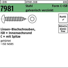~DIN 7981 Stahl Form C-ISR galvanisch verzinkt Linsen-Blechschrauben mit Spitze · Innensechsrund - Abmessung: 2,2 x 13 -C-T6 VE=S (2000 Stück)