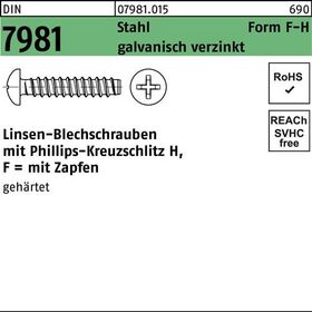 DIN 7981 Stahl Form F galvanisch verzinkt Linsen-Blechschrauben mit Zapfen mit Phillips-Kreuzschlitz H - Abmessung: F 2,9 x 16 -H VE=S (2000 Stück)