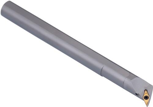 Dreh-Bohrstange mit Schraubklemmung zum spannen von 35° Rhombus positive Wendeschneidplatten mit einem Innenkreisdurchmesser von 3.97mm · 2.38mm Dick (ISO Bezeichnung VC.. 0702.. ) · linke Ausführung für Sonderanwendungen · Hartmetall mit Kühlkanalbohrung · 10mm Durchmesser x 100mm Länge für Kopierdrehen in einer und mehreren Richtungen