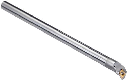Dreh-Bohrstange mit Schraubklemmung zum spannen von 55° Rhombus positive Wendeschneidplatten mit einem Innenkreisdurchmesser von 6.35mm · 2.38mm Dick (ISO Bezeichnung DC.. 0702.. ) · linke Ausführung zum 93° Längsdrehen mit abgesetzem Schaft · Hartmetall mit Kühlkanalbohrung · 12mm Durchmesser x 180mm Länge für Innenkegeldrehen · Kopierdrehen in einer und mehreren Richtungen und Längsdrehen mit und ohne Schulter