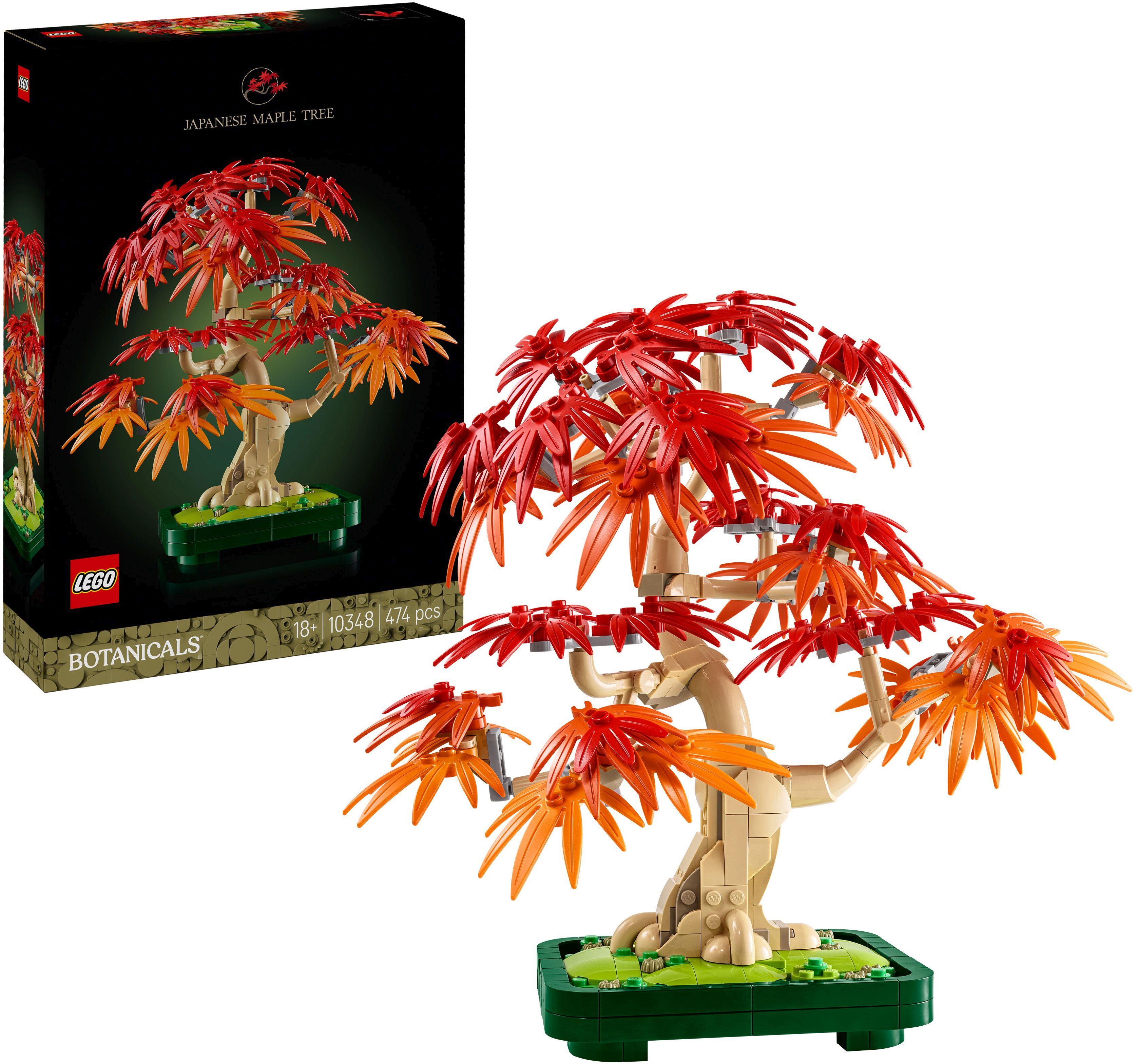 LEGO Botanicals Japanischer Roter Ahorn – Bonsai-Baum (10348) ist ein Bauset mit künstlichen Pflanzen für Erwachsene, das Ruhe in dein Zuhause bringt. Jede Menge faszinierende Details machen dieses der Natur nachempfundene Modell zu einer Pflanzen-Deko, die niemals verwelkt oder gegossen werden muss. Diese LEGO Kunstpflanze spiegelt die Schönheit und Lebendigkeit echter Bonsai-Bäume wider. Der rote Ahorn hat rote und orangefarbene Blätter und steht in einer dunkelgrünen Pflanzenschale. Schalte ab und entspanne dich, während du die baubare Pflanze zusammenfügst. Stelle sie dann in dein Wohnzimmer oder Büro, um dem Raum einen Hauch von Ruhe und Gelassenheit zu verleihen. Bonsai-Bäume der Art Japanischer Roter Ahorn symbolisieren Frieden und Ausgeglichenheit und sollen Glück und Wohlstand verheißen. Dieses Bauset bietet ein fesselndes Projekt und ist ein tolles Geschenk zu fast jedem Anlass, beispielsweise zum Valentinstag, Muttertag, Vatertag, Geburtstag oder einer Einweihungsparty. Das Modell ist 24 cm hoch, 22 cm breit und 26 cm tief. Enthält 474 Teile.