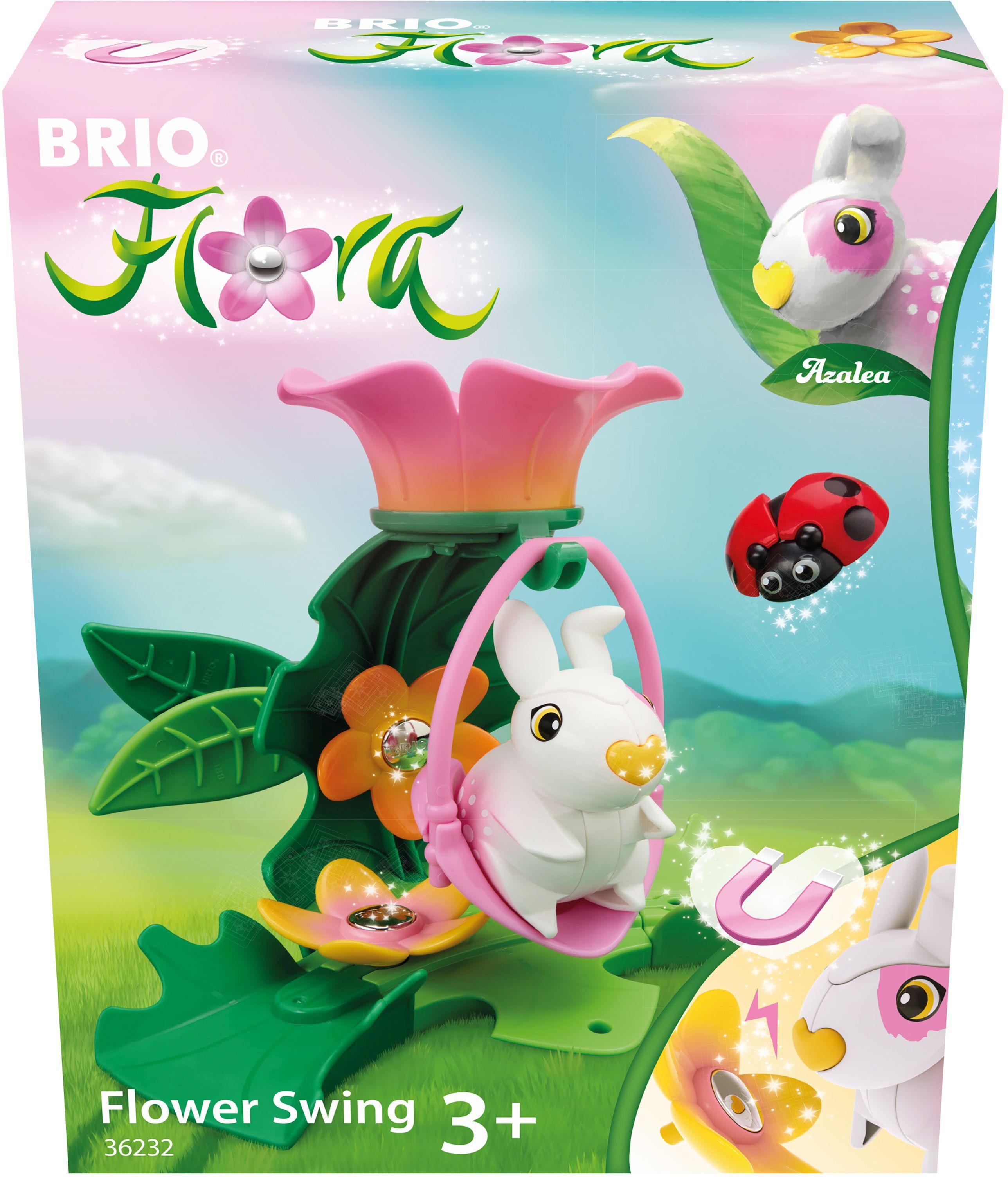 Tauche ein in die magische Welt von BRIO Flora: Grenzenloser Spielspaß ist mit dem Blumenschaukel-Spielset garantiert. Azalea ist eine bunte Figur, die mit ihrer magischen Magnetnase gerne Blumen sammelt. Kinder können in dieser magischen Welt nach Lust und Laune spielen und so ihre Kreativität, Fantasie und Erzählfähigkeiten weiterentwickeln. Dieses Set ist mit allen Flora-Spielzeugen kompatibel und bietet unbegrenztes kreatives Spielvergnügen – perfekt für kleine Hände und viel Fantasie.Über BRIO Flora: Bei BRIO Flora erkundet eine Gemeinschaft kleiner Freunde eine magische Blumenwelt voller farbenfroher Abenteuer. Jedes Spielset bringt Kindern die Freude an der Natur nahe und lässt sie Blumen, Blätter und Beeren sammeln, während sie ihre eigenen fantasievollen Geschichten in einer bezaubernden, unbegrenzten Welt erleben.36232 BRIO Flora Azaleas Blumenschaukel enthält 11 Teile: 1 x Flora Figur (Azalea), 1 x Blume, 1 x Marienkäfer, 1 x Schaukelsitz, 1 x Rahmen für Blattschaukel, 2 x Blattwegeteile, 2 x Blumendekorationen, 2 x Blattdekorationen.