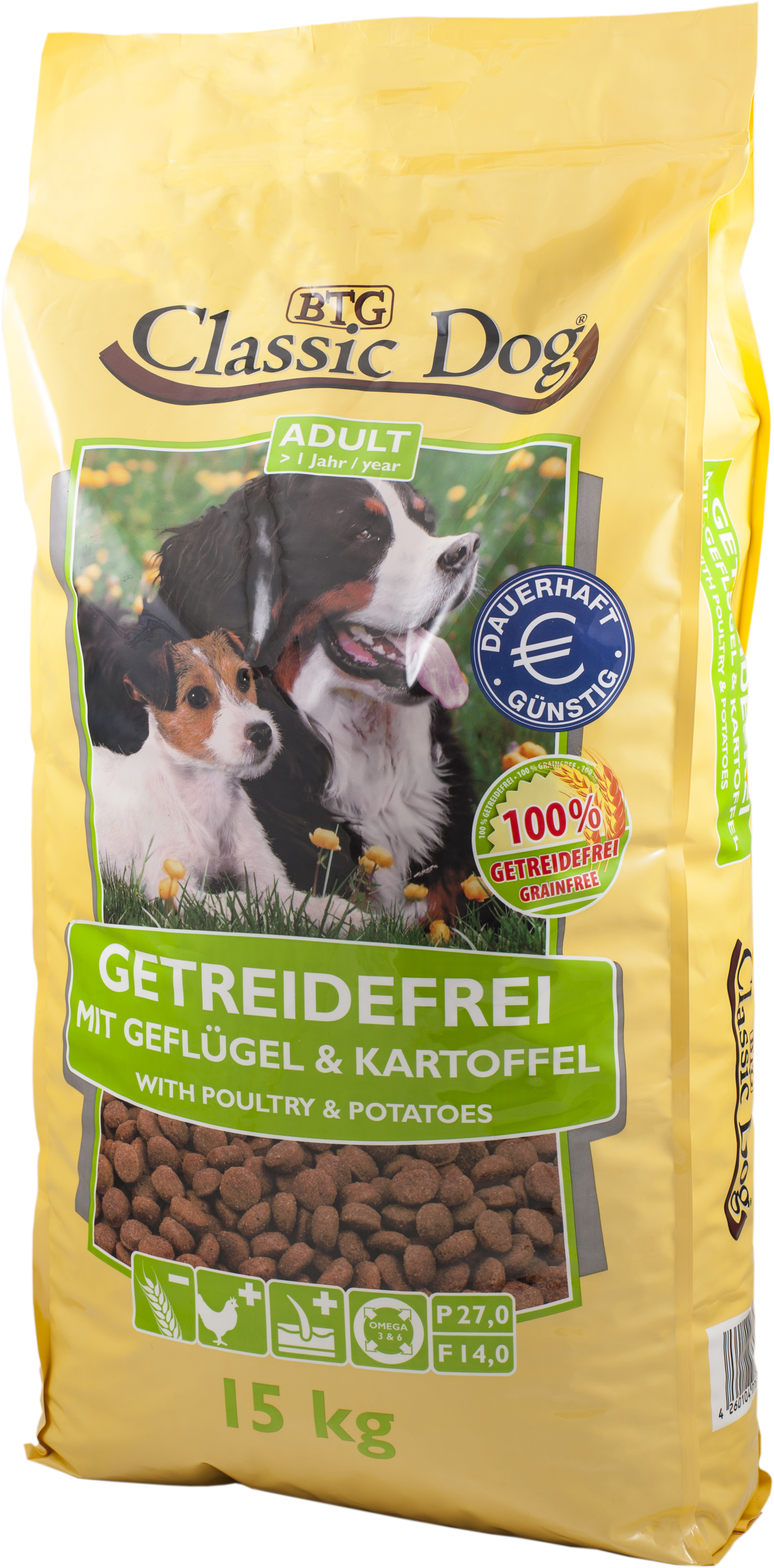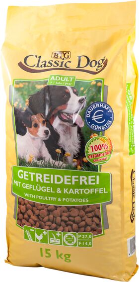 Classic Dog Hundefutter getreidefrei besteht hauptsächlich aus leicht verdaulichem Geflügelfleisch und Kartoffelmehl. Für Hunde mit einer Unverträglichkeit gegenüber Getreide ist Classic Dog Hundefutter getreidefrei Geflügel & Kartoffel die ideale Ernährung, zumal der Preis unschlagbar günstig ist.
