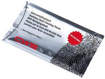 CWS Edelstahl Pflegetuch Pflegende Wischtücher gegen Fingerabdrücke und Schmutzrückstände · einzeln verpackt. Artikel·Nr. : 120995000 Fabrikat : CWS