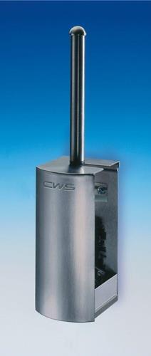 CWS Toilettenbürsten·Halter Paradiseline CWS Toilettenbürste mit auswechselbarem schwarzen Bürstenkopf. Bürstengriff · Be· hälter Edelstahl · Tropfschale entnehmbar · Sichtflächen matt gebürstet. Frontseite geschlossen. Komplett einschließlich Adapter zur Wandmontage und Befestigungsmaterial. Maße (HxBxT): 360 x 85 x 100 mm Ausführung : Edelstahl Typ : 726 Artikel·Nr. : 726100 Fabrikat : CWS