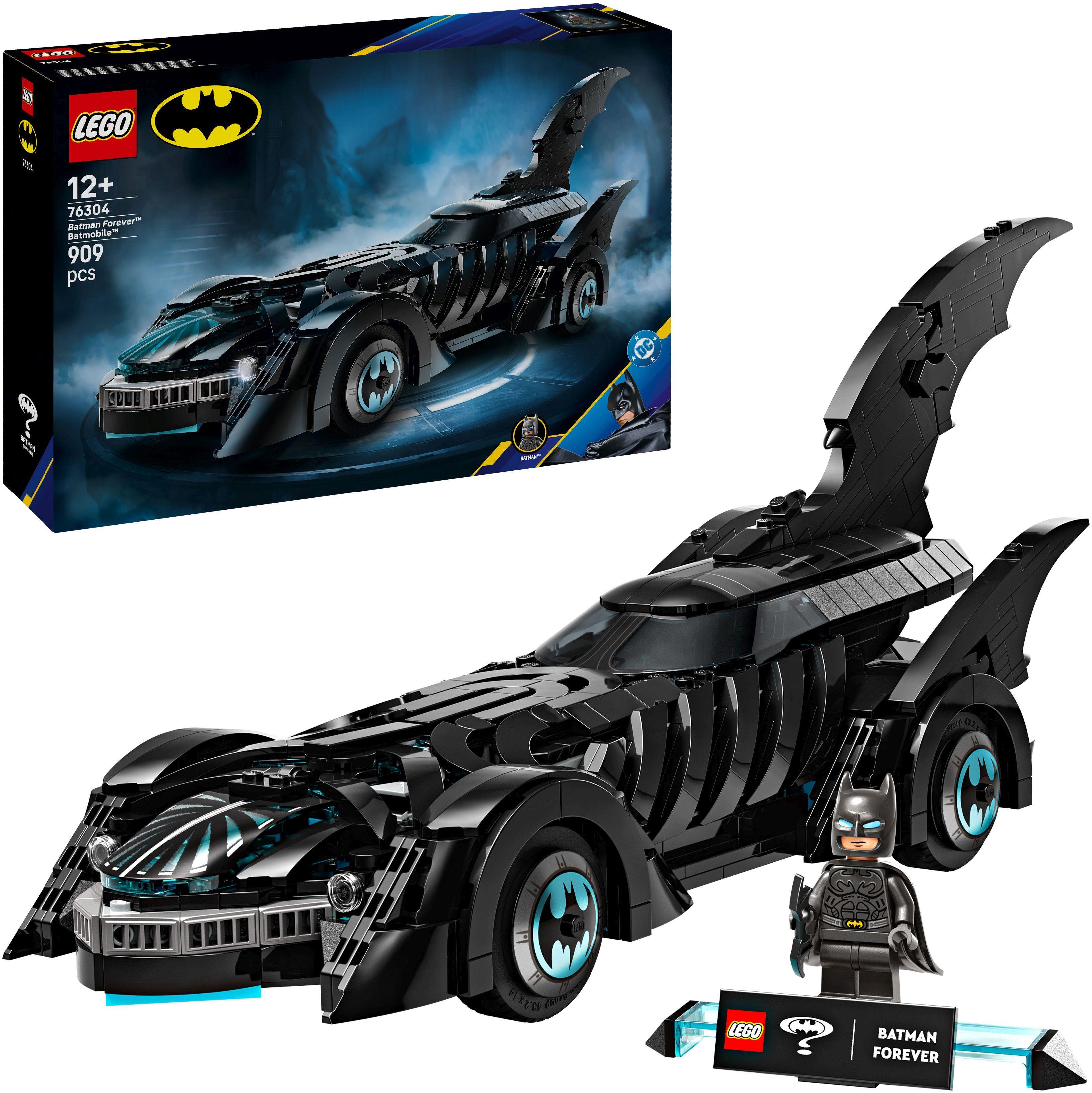 Das LEGO DC Batman: Batman Forever Batmobil (76304) ist ein detailreiches Bauspielzeug zum Sammeln für Fans der DC Super Heroes, die Lust auf ein anspruchsvolles Bauprojekt haben. Dieses Superhelden-Spielzeug richtet sich an kreative Jungen und Mädchen ab 12 Jahren, die ein Modell zum Bauen, Spielen und Ausstellen suchen. Die authentische Nachbildung des legendären Flitzers aus Batman Forever beeindruckt mit einer geschwungenen Windschutzscheibe, drehbaren Rädern und dekorativen Elementen. Öffnet man das Cockpit, kommt das detailreiche Interieur zum Vorschein. Zusätzlich enthält das Set eine LEGO Batman Minifigur auf einem speziellen Ständer – ein Highlight für Sammler von LEGO Batman Film Sets und LEGO Batman Sets. Dieses Batmobile Spielzeugauto ist eine tolle Geschenkidee für alle, die sich für Modellautos begeistern. Auch als Geschenk für Jungen ab 12 Jahren oder als kreative Überraschung für Teenager. Zusätzlichen digitalen Bauspaß bietet die LEGO Builder App. Dort können Baumeister 3D-Ansichten des Modells vergrößern, drehen und ihren Baufortschritt verfolgen. Das Set besteht aus 909 Teilen und begeistert alle, die Spaß an Batman Geschenken und spannenden Bauprojekten haben. Das fertige Modell ist 17 cm hoch, 41 cm lang und 12 cm breit Enthält 909 Teile