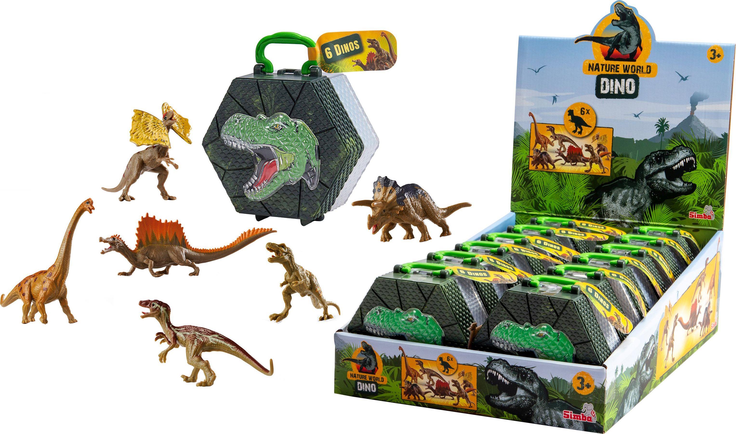 Display. 6 versch. Dinos in einer Box, L: 8-9cm, aufklappbare Box mit T- Rex Logo, Ab 3 Jahren.