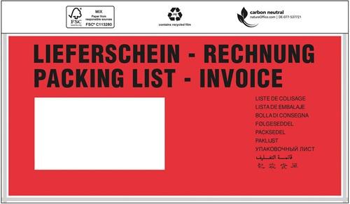 Hochwertiger und stabiler Schutz für Begleitpapiere. Sichere und griffbereite Anbringung von Lieferschein · Rechnung o. ä.. Ideal für Briefe · Päckchen · Pakete · Versandhülsen etc.. Besonders starker Kleber und reißfeste Folie. Einfacher Verschluss mit Haftklebestreifen. Anwendung: Dokumente von hinten in die Tasche einstecken · Schutzpapier entfernen und aufkleben. Material: LDPE-Folie 110 µ (Oberfolie 70 µ · Unterfolie 40 µ) · transparent. Silikonpapier 106 g/m².  . Umweltfreundliche Alternative aus 100 % Papier »