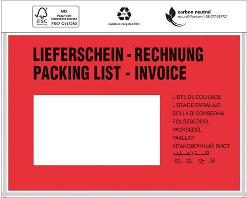 Standardqualität für den optimalen Versand von Begleitpapieren. Schutz vor Schmutz · Nässe und Beschädigung. Leichte Anbringung: Versandpapiere einlegen · aufkleben fertig. Material: LDPE-Folie 60 µ (Oberfolie 40 µ · Unterfolie 20 µ) · transparent. Silikonpapier 46 g/m² Aus Recyclingfolie mit 50 % PCR-Anteil und Papier Klimaneutral Umweltfreundliche Alternative aus 100 % Papier »