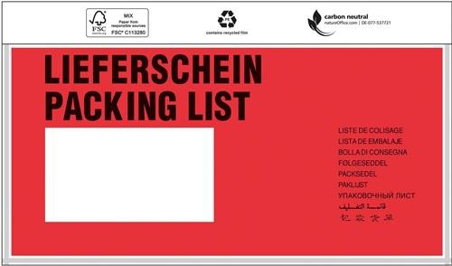 Dokumententaschen Standard Maße 240x110mm DIN-lang m.Druck Lieferschein TRANSPAK - VPE: 1000