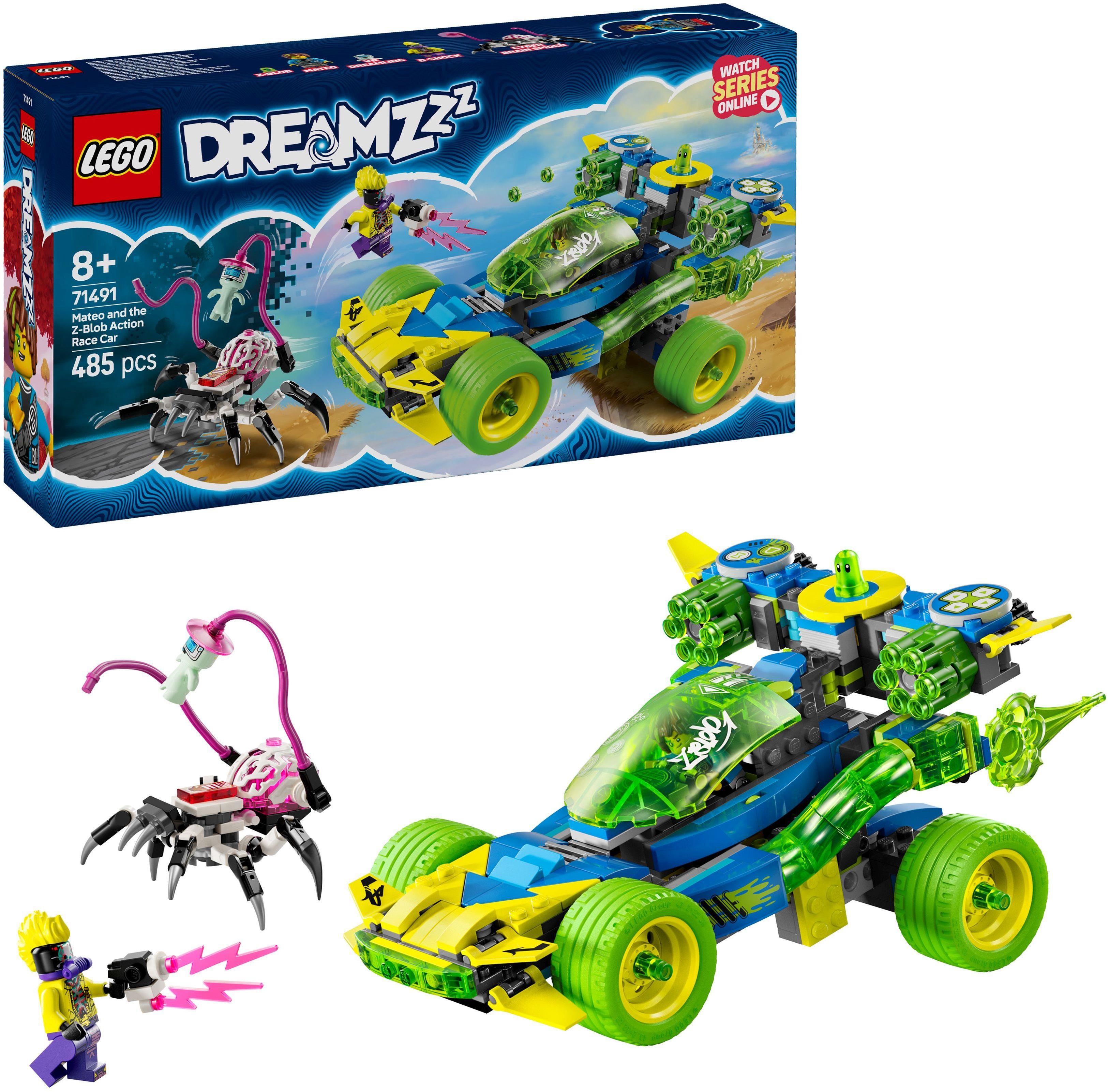LEGO DREAMZzz Mateo mit dem Z-Blob Action-Rennwagen (71491) ist ein 2-in-1 Bauset für Jungen und Mädchen ab 8 Jahren. Die Modelle aus diesem Set sind Fahrzeugen aus der TV-Serie nachempfunden und lassen Kinder mit Spielzeugautos durch die Traumwelt flitzen und Mateo und Z-Blob helfen, einen VR-Träumling vor der Cyberhirn-Spinne zu retten. 2 Bauoptionen bieten jungen Träumern riesigen Bauspaß mit dem Hauptmodell, das sie anschließend in einen Offroad-Flitzer oder ein superschnelles Spielzeug-Motorrad umbauen können. Eine abnehmbare Windschutzscheibe, drehende Räder und zwei 6-schüssige Shooter sowie abnehmbare Module, die auch an anderen LEGO DreamZzz Modellen von 2025 befestigt werden können, sind nur einige der coolen Details. Aber auch die Minifiguren aden zum Spielen ein: Der Held Mateo, der Bösewicht D-Shock, Z-Blob, eine Cyberhirn-Spinne und ein VR-Träumling . Dieses LEGO DREAMZzz Fantasy-Spielset ist ein tolles Geschenk für Mädchen und Jungen und Fahrzeugfans. Bauanleitungen in Form von Bildergeschichten schicken junge Träumer in spannende Abenteuer mit Mateo und Z-Blob. Der Offroad-Flitzer ist 10 cm hoch, 23 cm lang und 15 cm breit. Enthält 485 Teile.
