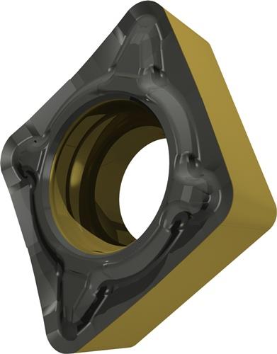 Einseitige positive Drehwendeschneidplatte · 80° Rhombisch mit 7° Freiwinkel · Innenkreisdurchmesser von 6.35mm · 2.38mm Dick · 0.8mm Radius · Indexgenauigkeit nach ISO-Toleranzklasse-M · Spanbrecher UR mit verrundeter Schneidkante · im Substrat T9415 · MT-CVD beschichtet WC-Co Substrat im ISO-Bereich P05 -P30 · zum schlichten bis schruppen bearbeiten von Stählen