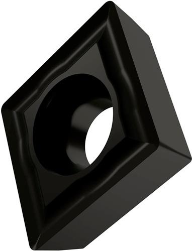 Einseitige positive Drehwendeschneidplatte · 80° Rhombisch mit 7° Freiwinkel · Innenkreisdurchmesser von 9.525mm · 3.97mm Dick · 0.8mm Radius · Indexgenauigkeit nach ISO-Toleranzklasse-M · Spanbrecher NF2 mit verrundeter Schneidkante · im Substrat T7325 · MT-CVD beschichtet functionally graded WC-Co carbide in den ISO-Bereichen M10 -M25 und S10 -S25 · zum schlichten bis medium bearbeiten von nichtrostenden Stählen und Superlegierungen