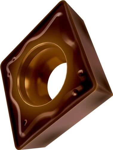 Einseitige positive Drehwendeschneidplatte · 80° Rhombisch mit 7° Freiwinkel · Innenkreisdurchmesser von 12.7mm · 4.76mm Dick · 0.8mm Radius · Indexgenauigkeit nach ISO-Toleranzklasse-M · Spanbrecher RM mit verrundeter Schneidkante · im Substrat T8430 · PVD beschichtet WC-Co Feinkornsubstrat in den ISO-Bereichen P20 -P40 und M20 -M35 · zum schlichten bis schruppen bearbeiten von Stählen und nichtrostenden Stählen