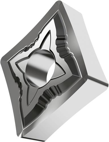Doppelseitige negative Drehwendeschneidplatte · 80° Rhombisch mit Innenkreisdurchmesser von 12.7mm · 4.76mm Dick · 0.8mm Radius · Indexgenauigkeit nach ISO-Toleranzklasse-M · Spanbrecher SF mit verrundeter Schneidkante · im Substrat H07 · unbeschichtet WC-Co Substrat in den ISO-Bereichen K10 -K25 und S01 -S20 · zum schlichten bis medium bearbeiten von Gusseisen und Superlegierungen
