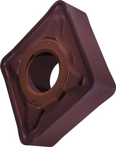 Doppelseitige negative Drehwendeschneidplatte · 80° Rhombisch mit Innenkreisdurchmesser von 12.7mm · 4.76mm Dick · 1.2mm Radius und Indexgenauigkeit nach ISO-Toleranzklasse-M · Spanbrecher NRM · im Substrat T8430 · PVD beschichtet WC-Co Feinkornsubstrat in den ISO-Bereichen P20 -P40 und M20 -M35 · zum medium bis schruppen bearbeiten von Stählen und nichtrostenden Stählen