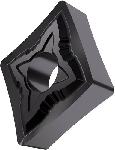 Doppelseitige negative Drehwendeschneidplatte · 80° Rhombisch mit Innenkreisdurchmesser von 12.7mm · 4.76mm Dick · 1.2mm Radius · Indexgenauigkeit nach ISO-Toleranzklasse-M · Spanbrecher SF mit verrundeter Schneidkante · im Substrat T6310 · PVD beschichtet WC-Co Feinstkornsubstrat in den ISO-Bereichen P01 -P15/M01 -M15/K05 -K20/S01 -S15 und H01 -H15 · zum schlichten bis medium bearbeiten von Stählen · nichtrostenden Stählen · Gusseisen · Superlegierungen und gehärtetem Material
