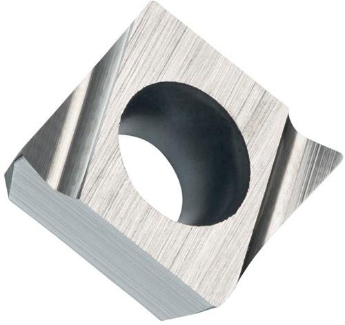 Spezialausführung positive Drehwendeschneidplatte · 80° Rhombisch mit 11° Freiwinkel · Innenkreisdurchmesser von 6.35mm · 2.38mm Dick · 0.2mm Radius · Indexgenauigkeit nach ISO-Toleranzklasse-G · Spanbrecher JZ mit scharfer Schneidkante · im Substrat TT010 · unbeschichtet Cermet im ISO-Bereich P01 -P10 · zum schlichten bearbeiten von Stählen mit einem linksschneidendem Werkzeug