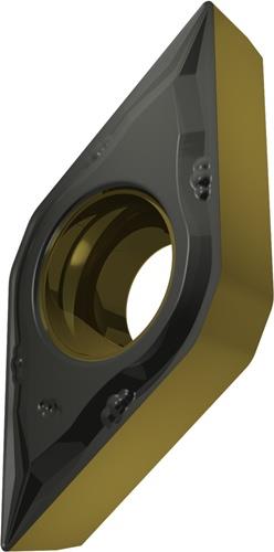 Einseitige positive Drehwendeschneidplatte · 55° Rhombisch mit 7° Freiwinkel · Innenkreisdurchmesser von 6.35mm · 2.38mm Dick · 0.2mm Radius · Indexgenauigkeit nach ISO-Toleranzklasse-M · Spanbrecher FM mit verrundeter Schneidkante · im Substrat T9415 · MT-CVD beschichtet WC-Co Substrat im ISO-Bereich P05 -P30 · zum schlichten bis medium bearbeiten von Stählen