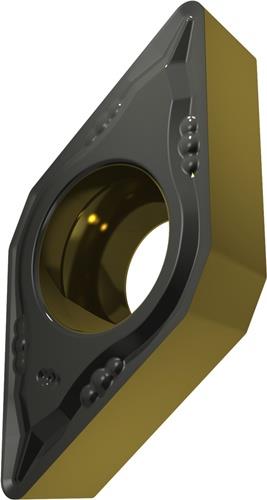 Einseitige positive Drehwendeschneidplatte · 55° Rhombisch mit 7° Freiwinkel · Innenkreisdurchmesser von 9.525mm · 3.97mm Dick · 0.8mm Radius · Indexgenauigkeit nach ISO-Toleranzklasse-M · Spanbrecher FM mit verrundeter Schneidkante · im Substrat T9415 · MT-CVD beschichtet WC-Co Substrat im ISO-Bereich P05 -P30 · zum schlichten bis medium bearbeiten von Stählen