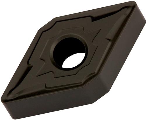 Doppelseitige negative Drehwendeschneidplatte · 55° Rhombisch mit Innenkreisdurchmesser von 9.525mm · 4.76mm Dick · 0.4mm Radius · Indexgenauigkeit nach ISO-Toleranzklasse-M · Spanbrecher M mit verrundeter Schneidkante · im Substrat T9335 · MT-CVD beschichtet functionally graded WC-Co carbide im ISO-Bereich P20 -P45 · zum schlichten bis schruppen bearbeiten von Stählen