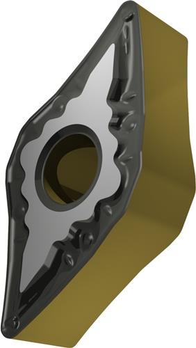 Doppelseitige negative Drehwendeschneidplatte · 55° Rhombisch mit Innenkreisdurchmesser von 9.525mm · 4.76mm Dick · 0.8mm Radius · Indexgenauigkeit nach ISO-Toleranzklasse-M · Spanbrecher FM mit verrundeter Schneidkante · im Substrat T9415 · MT-CVD beschichtet WC-Co Substrat im ISO-Bereich P05 -P30 · zum schlichten bis medium bearbeiten von Stählen