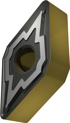 Doppelseitige negative Drehwendeschneidplatte · 55° Rhombisch mit Innenkreisdurchmesser von 12.7mm · 4.76mm Dick · 1.2mm Radius · Indexgenauigkeit nach ISO-Toleranzklasse-M · Spanbrecher M mit verrundeter Schneidkante · im Substrat T9415 · MT-CVD beschichtet WC-Co Substrat im ISO-Bereich P05 -P30 · zum schlichten bis schruppen bearbeiten von Stählen