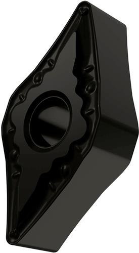 Doppelseitige negative Drehwendeschneidplatte · 55° Rhombisch mit Innenkreisdurchmesser von 12.7mm · 6.35mm Dick · 0.4mm Radius · Indexgenauigkeit nach ISO-Toleranzklasse-M · Spanbrecher FM mit verrundeter Schneidkante · im Substrat T7325 · MT-CVD beschichtet functionally graded WC-Co carbide · zum schlichten bis medium bearbeiten