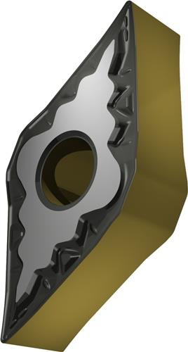 Doppelseitige negative Drehwendeschneidplatte · 55° Rhombisch mit Innenkreisdurchmesser von 12.7mm · 6.35mm Dick · 0.4mm Radius · Indexgenauigkeit nach ISO-Toleranzklasse-M · Spanbrecher FM mit verrundeter Schneidkante · im Substrat T9415 · MT-CVD beschichtet WC-Co Substrat im ISO-Bereich P05 -P30 · zum schlichten bis medium bearbeiten von Stählen