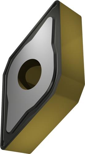 Doppelseitige negative Drehwendeschneidplatte · 55° Rhombisch mit Innenkreisdurchmesser von 12.7mm · 6.35mm Dick · 0.8mm Radius · Indexgenauigkeit nach ISO-Toleranzklasse-M · Spanbrecher NM mit verrundeter Schneidkante · im Substrat T9415 · MT-CVD beschichtet WC-Co Substrat im ISO-Bereich P05 -P30 · zum schlichten bis schruppen bearbeiten von Stählen