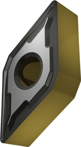 Doppelseitige negative Drehwendeschneidplatte · 55° Rhombisch mit Innenkreisdurchmesser von 12.7mm · 6.35mm Dick · 0.8mm Radius · Indexgenauigkeit nach ISO-Toleranzklasse-M · Spanbrecher R mit verrundeter Schneidkante · im Substrat T9415 · MT-CVD beschichtet WC-Co Substrat im ISO-Bereich P05 -P30 · zum medium bis schruppen bearbeiten von Stählen