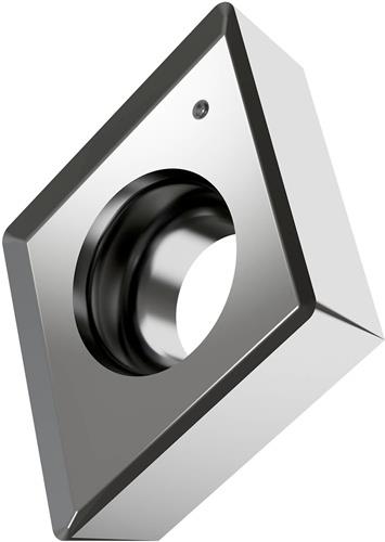 Einseitige positive Drehwendeschneidplatte · 75° Rhombisch mit 7° Freiwinkel · Innenkreisdurchmesser von 7.94mm · 3.18mm Dick · 0.4mm Radius · Indexgenauigkeit nach ISO-Toleranzklasse-G · Spanbrecher SF2 mit verrundeter Schneidkante · im Substrat H07 · unbeschichtet WC-Co Substrat im ISO-Bereich S01 -S20 · zum schlichten bis medium bearbeiten von Superlegierungen