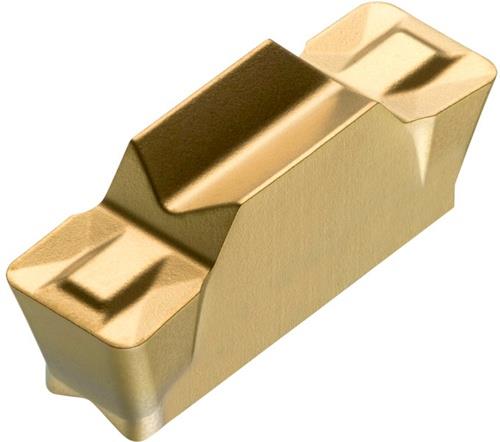 Doppelseitige Ein-und Abstech Wendeschneidplatte · 16.4mm lang mit einer 5mm Schnittbreite und einem 0.8mm Eckenradius · eine Genauigkeit nach Toleranzklasse M und einem Spanbrecher M · Substrat T8330 PVD beschichtetes Feinstkorn WC-Co Hartmetall im ISO-Substrats-Bereich P25-P40 und K20-K40 zur Bearbeitung von Stahl und Guss in Kombination mit DORMER PRAMET GF..(RL) 05 und XLCCN 0516 Ein-und Abstechwerkzeugen