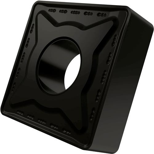 Doppelseitige negative Drehwendeschneidplatte · Viereckig mit Innenkreisdurchmesser von 12.7mm · 4.76mm Dick · 0.8mm Radius · Indexgenauigkeit nach ISO-Toleranzklasse-M · Spanbrecher RM mit verrundeter Schneidkante · im Substrat T5305 · MT-CVD beschichtet WC-Co Substrat im ISO-Bereich K01 -K15 · zum medium bis schruppen bearbeiten von Gusseisen