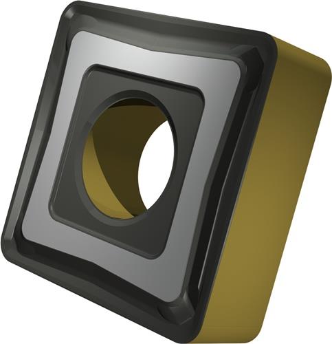 Doppelseitige negative Drehwendeschneidplatte · Viereckig mit Innenkreisdurchmesser von 19.05mm · 6.35mm Dick · 1.6mm Radius · Indexgenauigkeit nach ISO-Toleranzklasse-M · Spanbrecher M mit verrundeter Schneidkante · im Substrat T9415 · MT-CVD beschichtet WC-Co Substrat im ISO-Bereich P05 -P30 · zum schlichten bis schruppen bearbeiten von Stählen