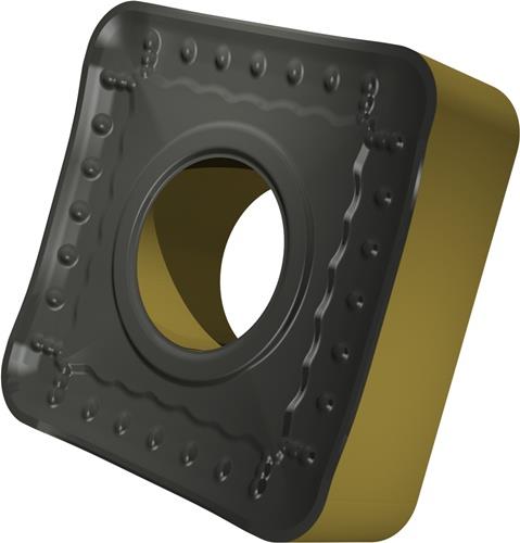 Doppelseitige negative Drehwendeschneidplatte · Viereckig mit Innenkreisdurchmesser von 19.05mm · 6.35mm Dick · 2.4mm Radius · Indexgenauigkeit nach ISO-Toleranzklasse-M · Spanbrecher OR mit verrundeter Schneidkante · im Substrat T9415 · MT-CVD beschichtet WC-Co Substrat im ISO-Bereich P05 -P30 · zum medium bis schweres schruppen bearbeiten von Stählen
