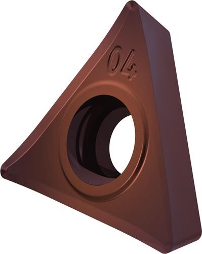 Einseitige positive Drehwendeschneidplatte · Triangular mit 7° Freiwinkel · Innenkreisdurchmesser von 6.35mm · 2.38mm Dick · 0.4mm Radius · Indexgenauigkeit nach ISO-Toleranzklasse-G · Spanbrecher SF3 mit verrundeter Schneidkante · im Substrat T8415.