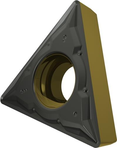 Einseitige positive Drehwendeschneidplatte · Triangular mit 7° Freiwinkel · Innenkreisdurchmesser von 6.35mm · 2.38mm Dick · 0.4mm Radius · Indexgenauigkeit nach ISO-Toleranzklasse-M · Spanbrecher FM mit verrundeter Schneidkante · im Substrat T9415 · MT-CVD beschichtet WC-Co Substrat im ISO-Bereich P05 -P30 · zum schlichten bis medium bearbeiten von Stählen