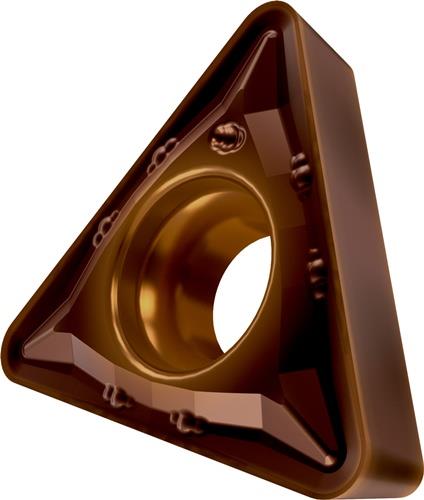 Einseitige positive Drehwendeschneidplatte · Triangular mit 7° Freiwinkel · Innenkreisdurchmesser von 6.35mm · 2.38mm Dick · 0.8mm Radius · Indexgenauigkeit nach ISO-Toleranzklasse-M · Spanbrecher FM mit verrundeter Schneidkante · im Substrat T8430 · PVD beschichtet WC-Co Feinkornsubstrat in den ISO-Bereichen P20 -P40 und M20 -M35 · zum schlichten bis medium bearbeiten von Stählen und nichtrostenden Stählen